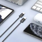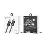 Esteticamente, o cabo adota um visual “All Black” discreto e profissional. A cor preta é uma escolha prática, pois mantém a aparência de limpeza por muito mais tempo, disfarçando marcas de manuseio e sujeira que inevitavelmente aparecem em cabos claros. Os conectores possuem um design ergonômico e reforçado na base, protegendo o ponto de junção entre o plugue e o fio, que é estatisticamente a área mais propensa a quebras em cabos de carregamento. A firmeza do encaixe USB-C garante uma conexão estável, evitando que o cabo se solte do aparelho com qualquer movimento brusco.