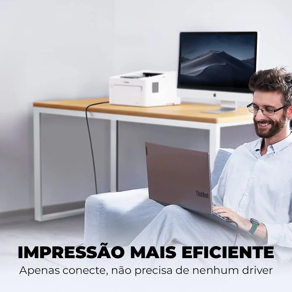 No ambiente de trabalho moderno, seja em casa ou no escritório, a confiabilidade dos periféricos é fundamental para a produtividade. A conexão entre o computador e a impressora, muitas vezes negligenciada, é um pilar dessa estabilidade. Cabos de baixa qualidade, curtos demais ou suscetíveis a interferências são a causa raiz de inúmeras frustrações: impressões que falham no meio, arquivos de digitalização corrompidos, ou o temido erro de “dispositivo USB não reconhecido”. O Cabo de Impressão USB 2.0 para BM da Ugreen, modelo 20847, foi meticulosamente projetado para resolver exatamente esses problemas, oferecendo uma conexão robusta, rápida e duradoura. Este cabo é a ponte de confiança que seu equipamento merece, garantindo que seu fluxo de trabalho nunca seja interrompido por uma falha de conexão. O principal destaque deste cabo é a sua adesão estrita ao padrão USB 2.0 High-Speed. Ele garante uma taxa de transferência de dados estável e veloz de até 480 Mbps. Em termos práticos, isso significa que trabalhos de impressão complexos e pesados, como documentos gráficos de alta resolução ou longos relatórios em PDF, são enviados para a impressora quase instantaneamente. Isso também é vital para dispositivos multifuncionais, onde o cabo é usado para digitalização (scanning), permitindo que imagens de alta resolução sejam transferidas para o PC sem atrasos ou gargalos. Além disso, ele mantém total retrocompatibilidade com dispositivos USB 1.1 (Full-Speed) e USB 1.0 (Low-Speed), assegurando funcionamento perfeito mesmo com equipamentos mais antigos. O que realmente diferencia o Ugreen 20847 da concorrência é a sua construção interna superior. A Ugreen é renomada pela qualidade de seus materiais, e este cabo não é exceção. Ele conta com uma blindagem tripla, uma característica premium projetada para o ambiente moderno, que é saturado de sinais de radiofrequência. Esta blindagem consiste em camadas de folha de alumínio e malha trançada, que trabalham em conjunto para minimizar drasticamente a interferência eletromagnética (EMI) e a interferência de radiofrequência (RFI). Sinais de roteadores Wi-Fi, smartphones, monitores e outros aparelhos eletrônicos são neutralizados, garantindo que o sinal de dados permaneça limpo, puro e livre de erros do início ao fim. Os condutores internos são feitos de cobre estanhado livre de oxigênio, que resiste à corrosão e garante a máxima condutividade elétrica, resultando em menor perda de sinal em distâncias maiores. A durabilidade física também é uma prioridade. Os conectores (USB Tipo A macho em uma ponta e Tipo B macho na outra) são banhados a níquel, resistindo à corrosão e ao desgaste diário de conectar e desconectar. O revestimento externo do cabo é feito de PVC flexível, porém robusto, capaz de suportar dobras e torções sem comprometer a integridade dos fios internos. Com um comprimento generoso de 2 metros, este cabo oferece uma flexibilidade de configuração incomparável. Diferente dos cabos curtos que geralmente acompanham as impressoras, os 2 metros permitem que você posicione sua impressora, scanner ou multifuncional onde for mais conveniente no seu espaço de trabalho, e não onde o cabo dita. Isso ajuda a manter a mesa organizada e reduz a tensão nos conectores do seu PC e da sua impressora. A compatibilidade é universal. O conector USB-B é o padrão da indústria para a vasta maioria de impressoras (HP, Canon, Epson, Brother, Lexmark, Dell), scanners, máquinas de fax, dispositivos multifuncionais e até mesmo equipamentos de áudio como interfaces MIDI, teclados musicais e DACs (Conversores Digital-Analógico). É uma solução “plug-and-play” que funciona imediatamente com Windows, macOS e Linux, sem a necessidade de qualquer instalação de driver.