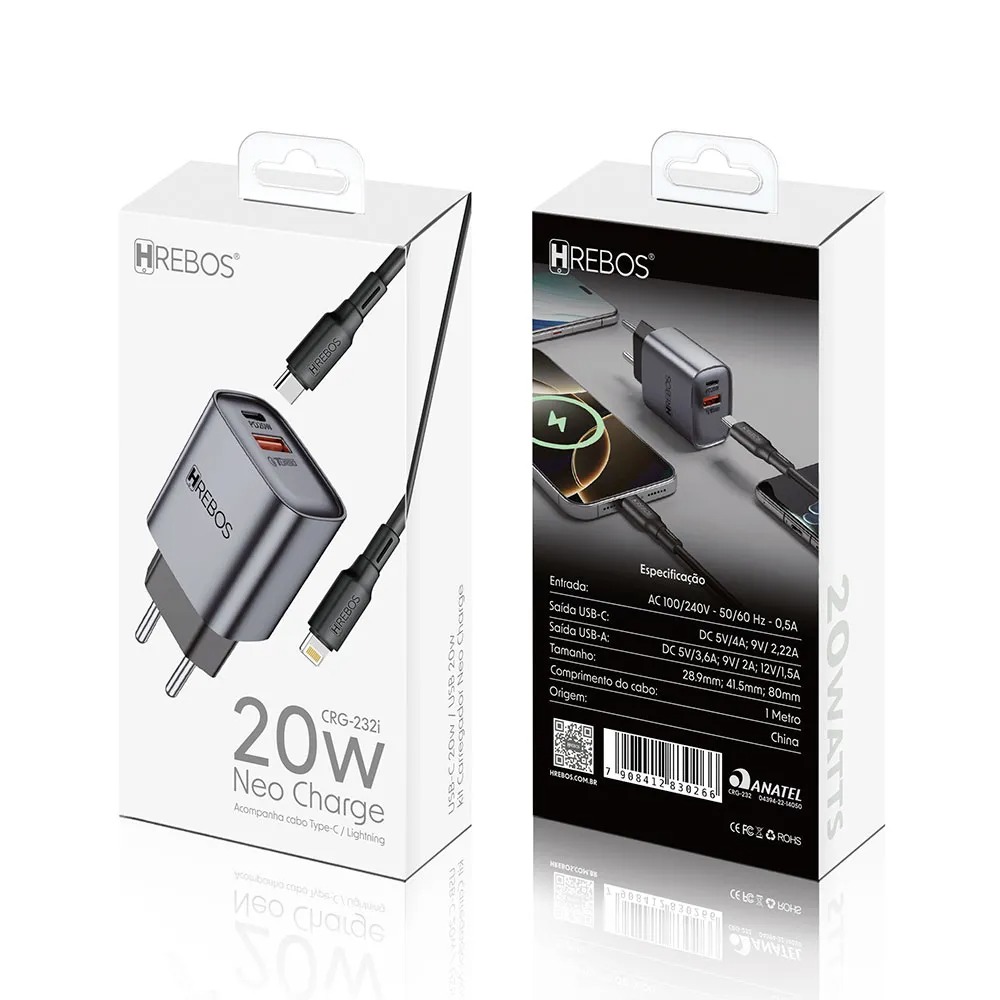 Carga Acelerada de 20W e Cabo Incluso Com uma entrega de potência de até 20W, este carregador reduz drasticamente o tempo que seu aparelho precisa ficar conectado à rede elétrica. Ele utiliza protocolos inteligentes que reconhecem a necessidade energética do dispositivo conectado, ajustando o fluxo para garantir uma carga rápida sem comprometer a vida útil da bateria interna. Para sua total conveniência, este conjunto acompanha um cabo de alta qualidade com conector compatível com dispositivos de ponta, permitindo que você comece a usar o produto imediatamente após a retirada da embalagem.