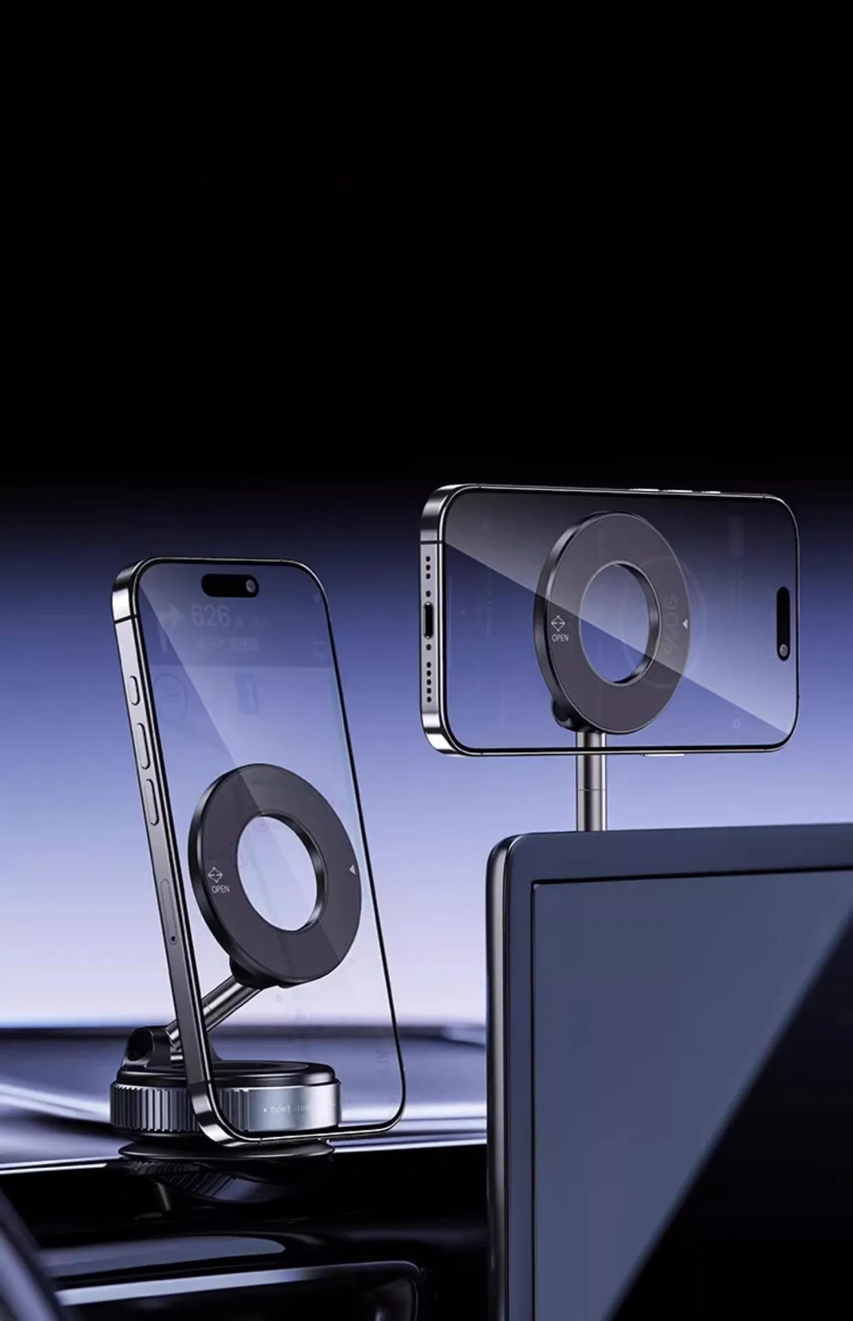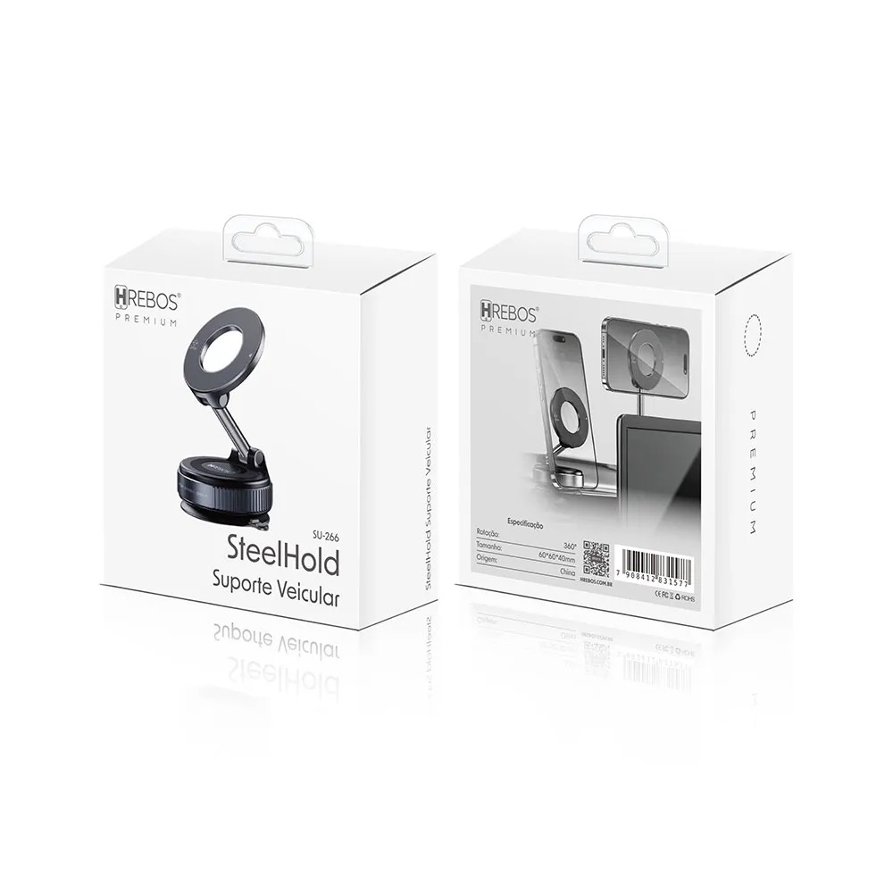 Design Compacto e Minimalista Esqueça aqueles suportes enormes que poluem o visual do painel do seu carro. Este modelo aposta em um design “SteelHold”, que é discreto, moderno e combina com o interior de qualquer veículo, desde carros populares até modelos premium. Por ser compacto, ele não bloqueia as saídas de ar condicionado e não ocupa espaço desnecessário no vidro, garantindo uma estética limpa e funcional.
