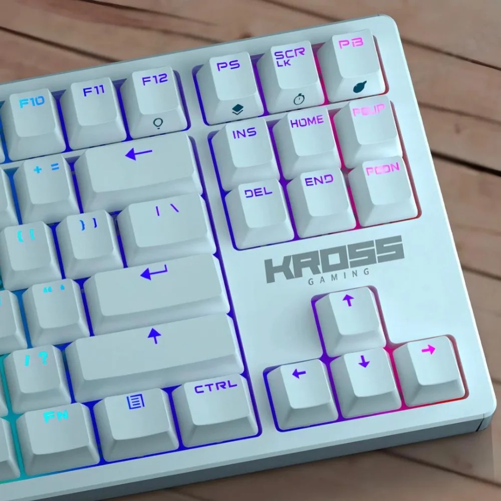 O design moderno e elegante do Kross KE-KG130, com sua estrutura branca e iluminação RGB vibrante, adiciona um toque de estilo e sofisticação ao seu setup de jogo. O acabamento premium e os materiais de alta qualidade garantem que este teclado seja não apenas funcional, mas também uma peça de destaque em sua mesa.